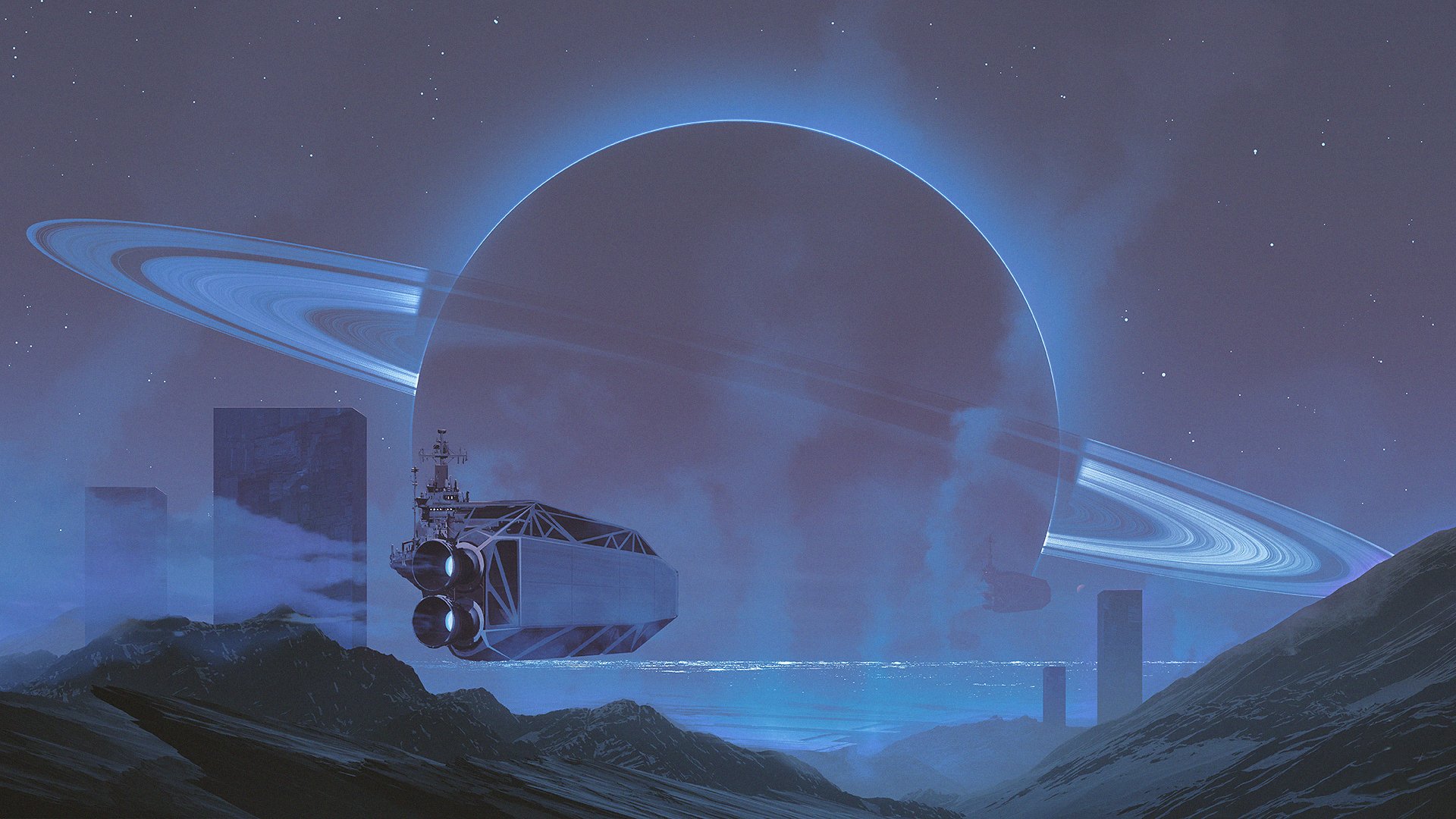 Fantastisches Fluggerät aus der Zukunft in Grautönen