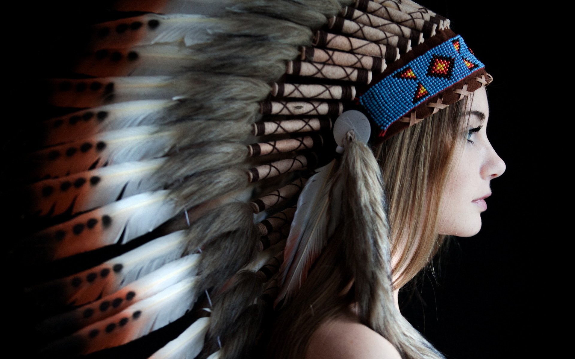 Porträt eines Mädchens mit Federn