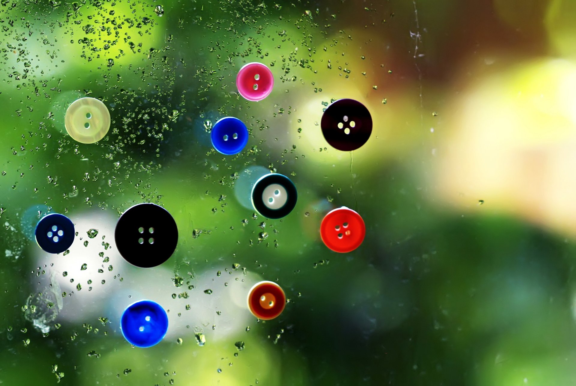 Farbige Knöpfe auf einem Hintergrund von Regentropfen