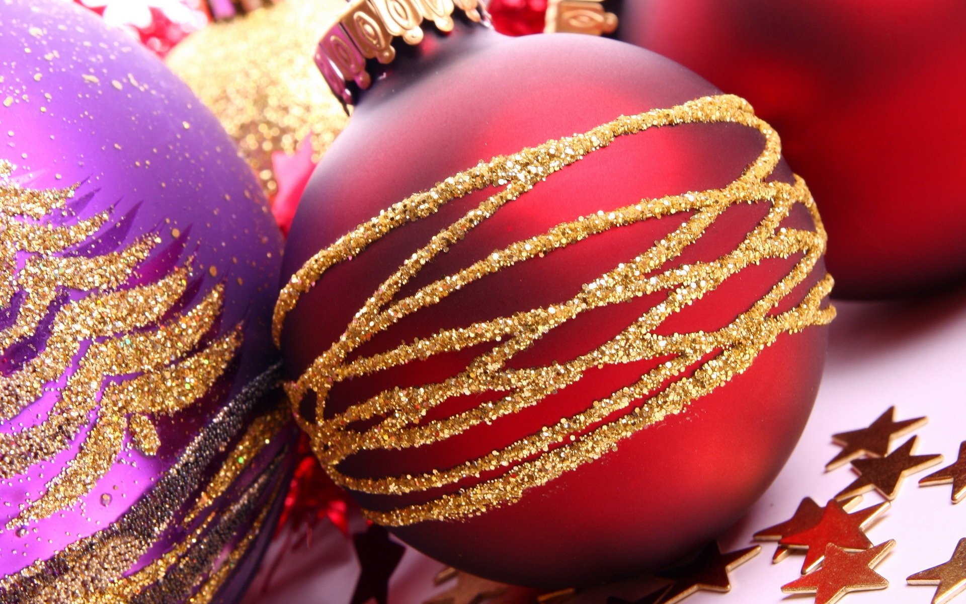Weihnachtskugeln und Sterne . Makro-Kamera
