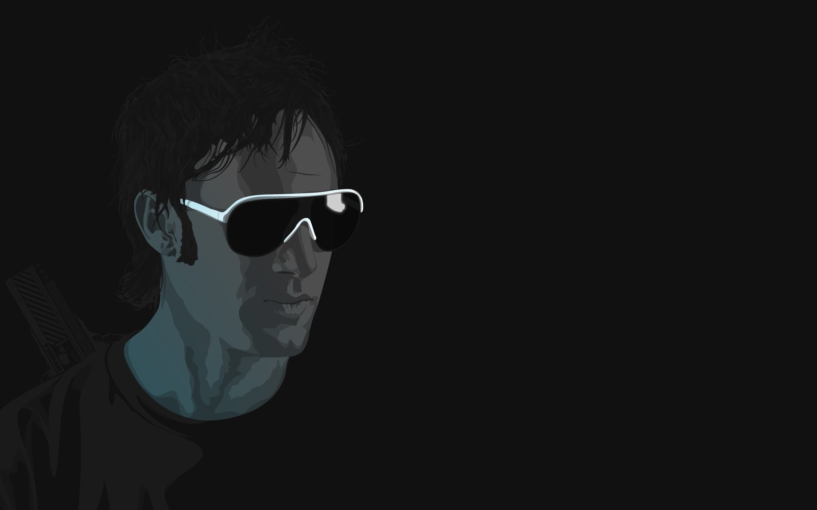 Mann in schwarzen Gläsern auf schwarzem Hintergrund