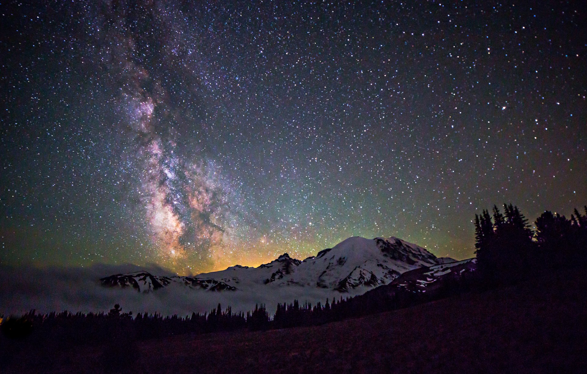 Sternenhimmel, Berge im Schnee und die Milchstraße