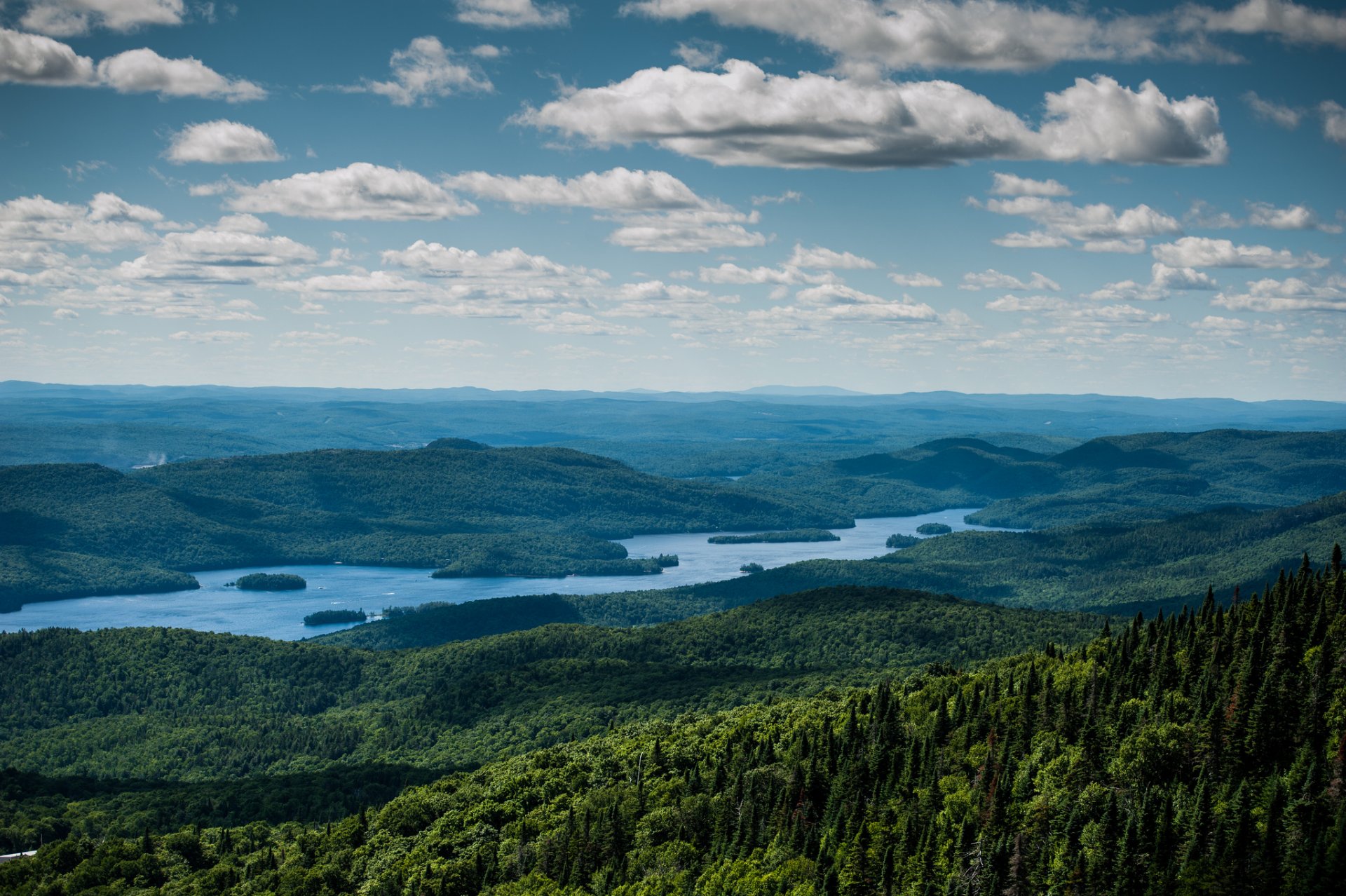 Landschaft. Wolken über dem See und Natur bei Sonnenuntergang