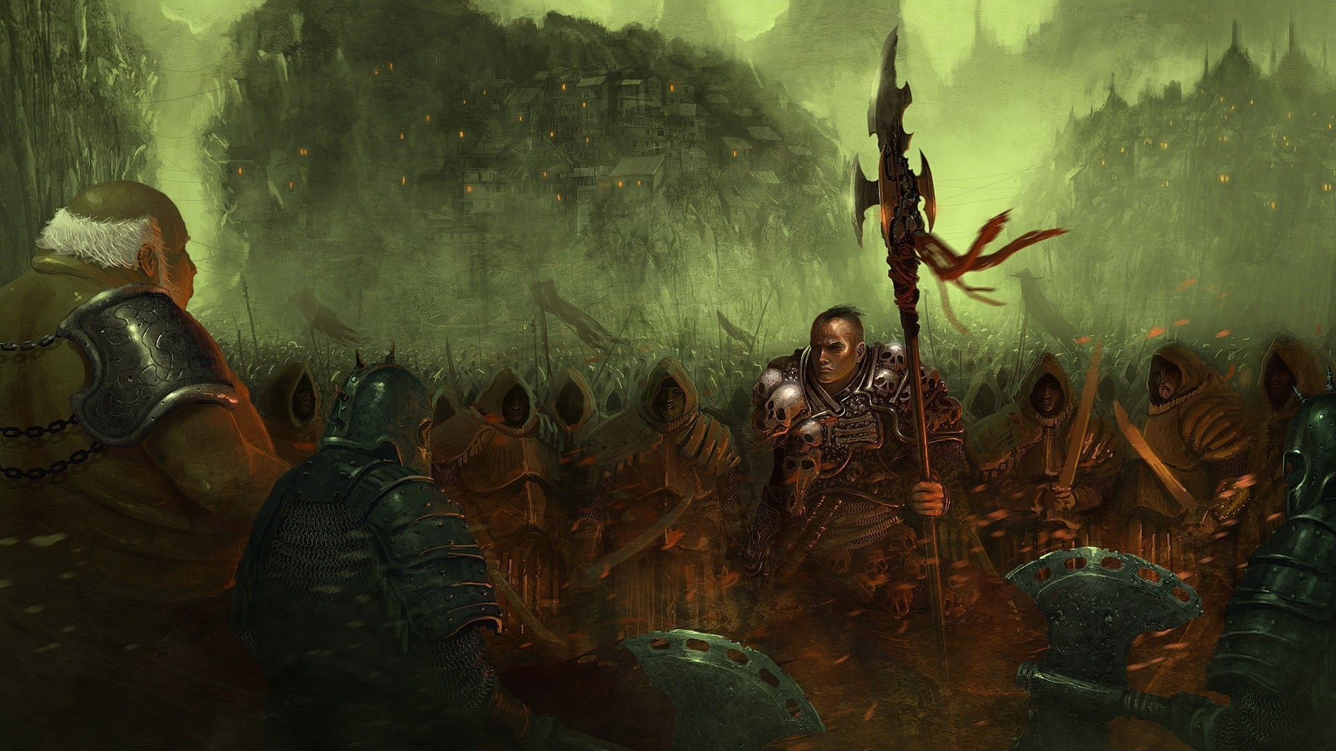 Ein Krieger in dunkler Rüstung läuft mit flatterndem Mantel