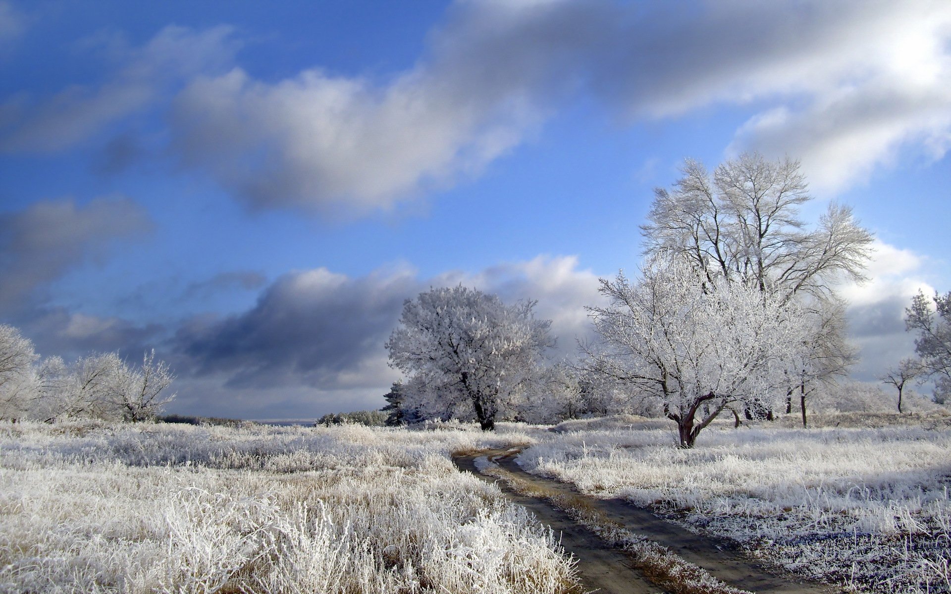 In der Morgenwintersonne gibt es eine verschneite Ebene zwischen schlafenden Winterbüschen und Bäumen