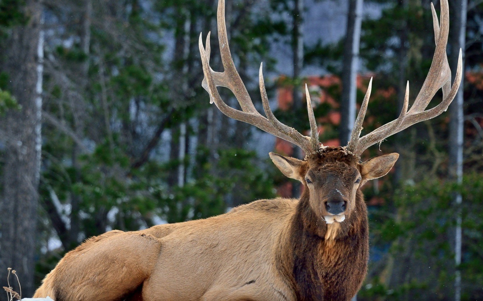 Ein Hirsch in der Natur, ein schönes Foto eines Hirsches mit unglaublichen Hörnern
