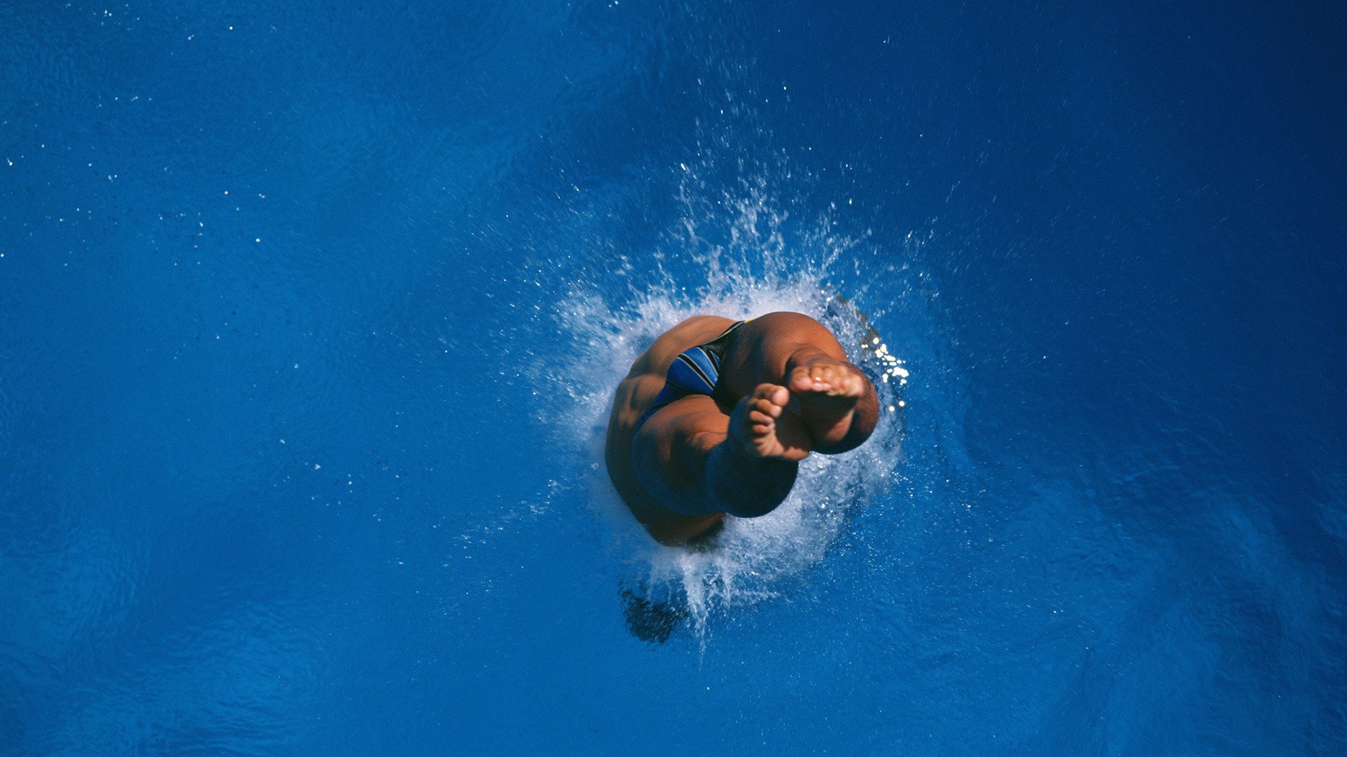 Sprung ins Wasser auf blauem Hintergrund