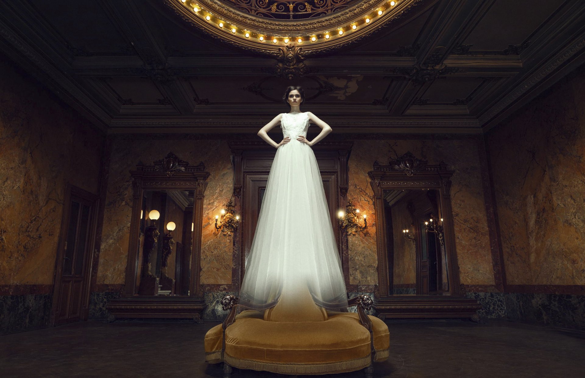 Peterhof, Petrodvorets, St. Petersburg, Russland, Springbrunnen im Sommer vor dem Hintergrund des blauen Himmels