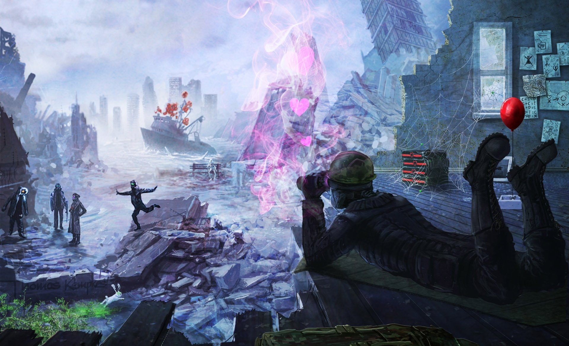 Ein Soldat im Hinterhalt beobachtet Spaziergänger