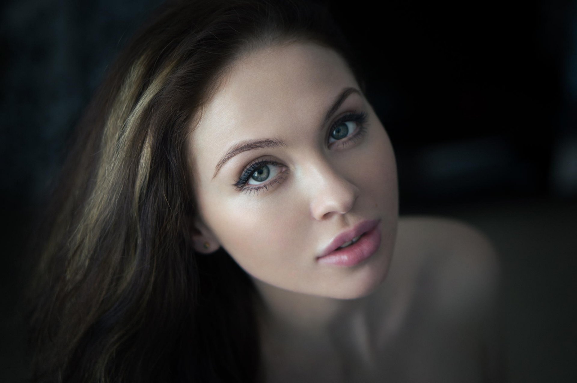 Mädchen-Modell im Kleid vor dem Hintergrund der Vorhänge