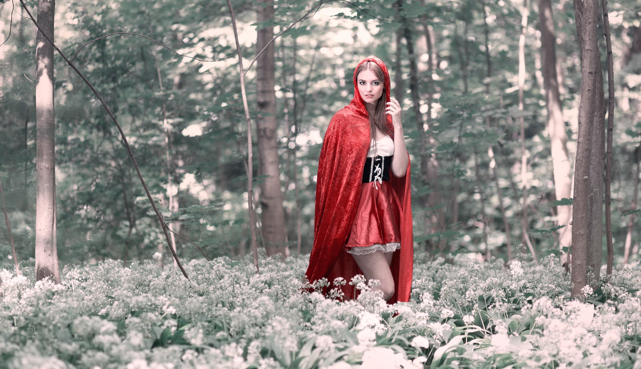 Rotkäppchen geht im Wald spazieren