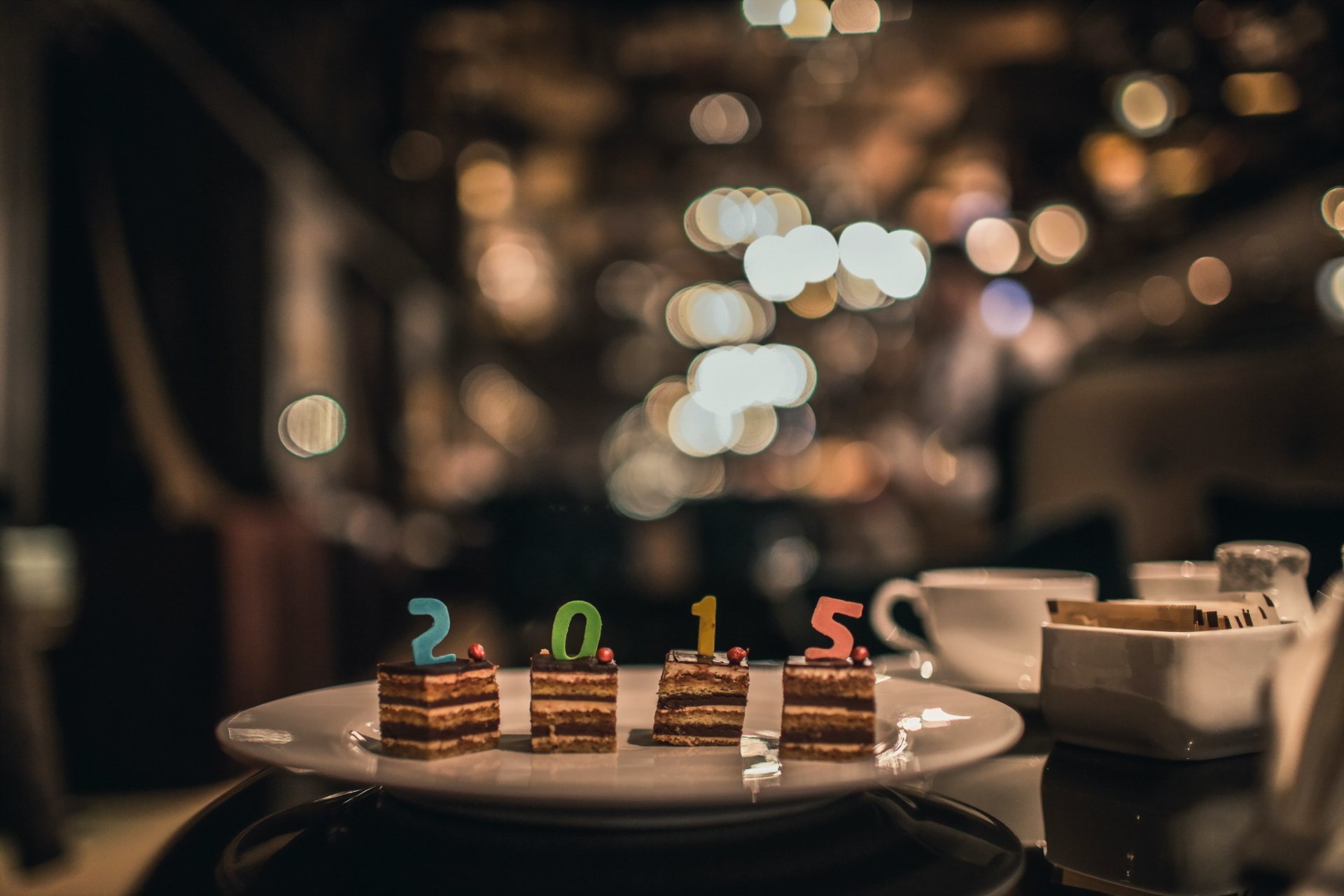 Kuchenstücke mit Kerzen auf einem Teller