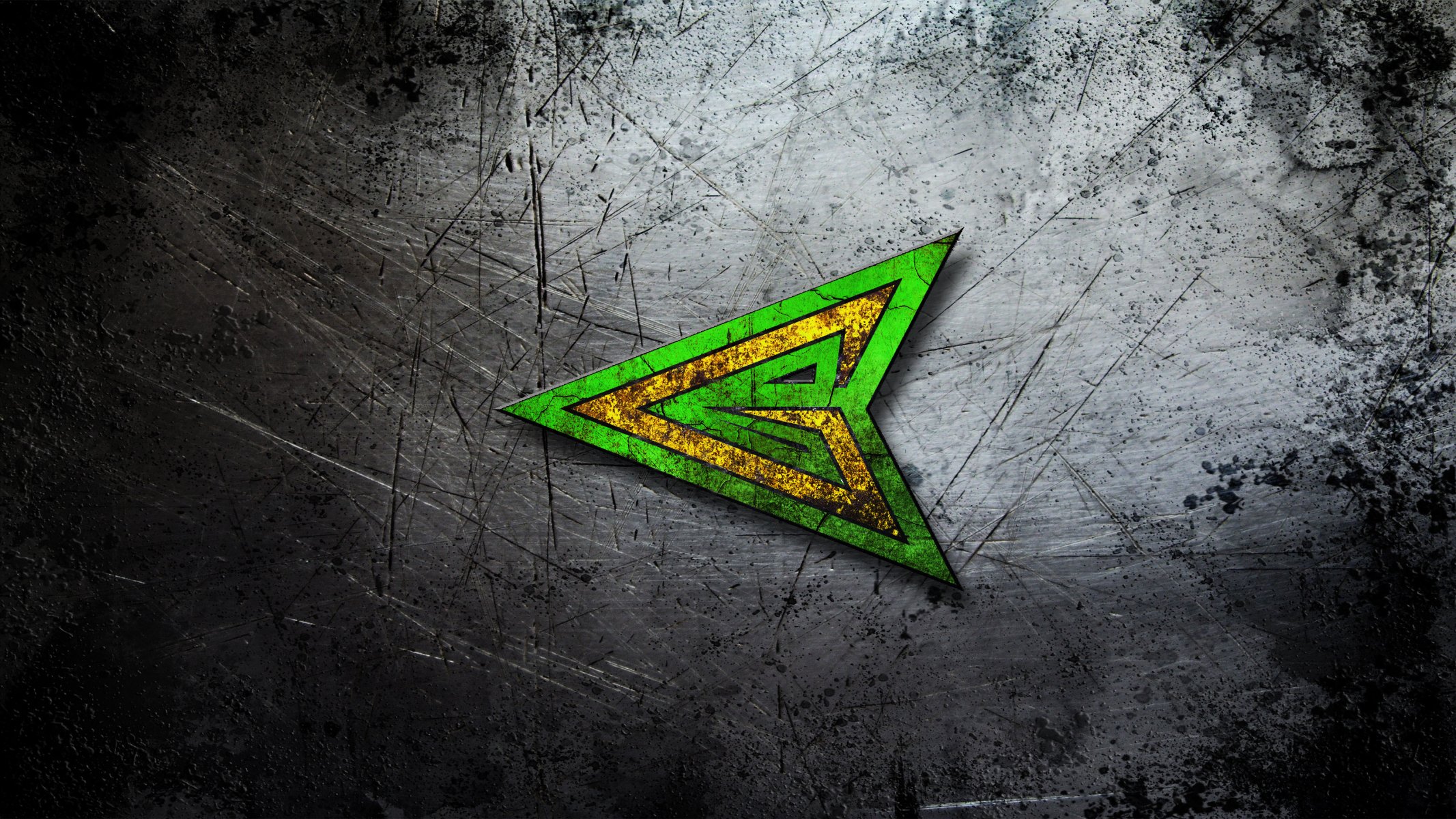 Grüner Pfeil auf schwarzem, zerkratztem Hintergrund