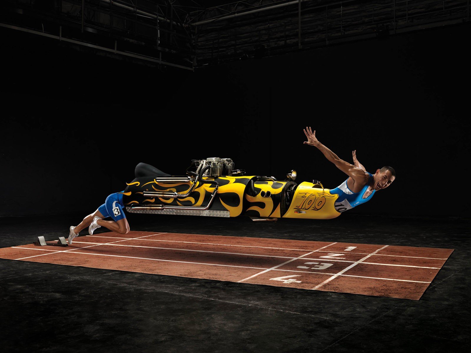 Eine Symbiose aus Athlet und gelb-schwarzem Auto für bessere Geschwindigkeit