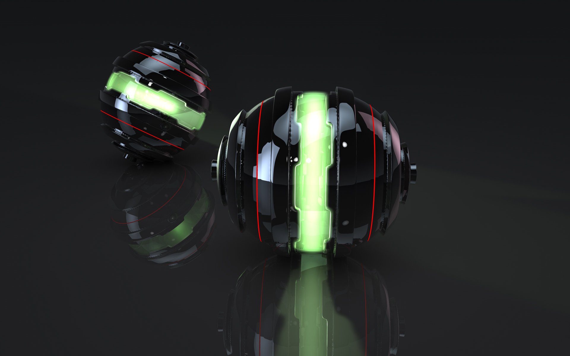 Belichtung - zwei Zylinder und eine blaue Kugel