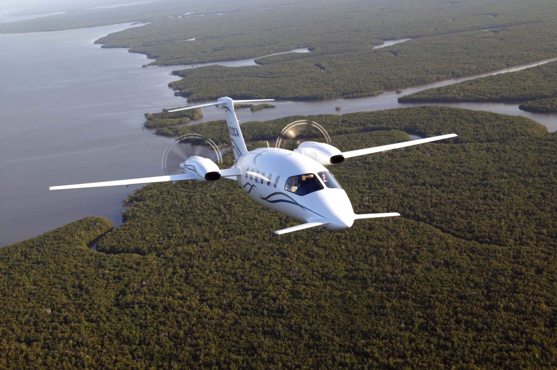Flugzeug, das über dem Wald an Höhe gewinnt