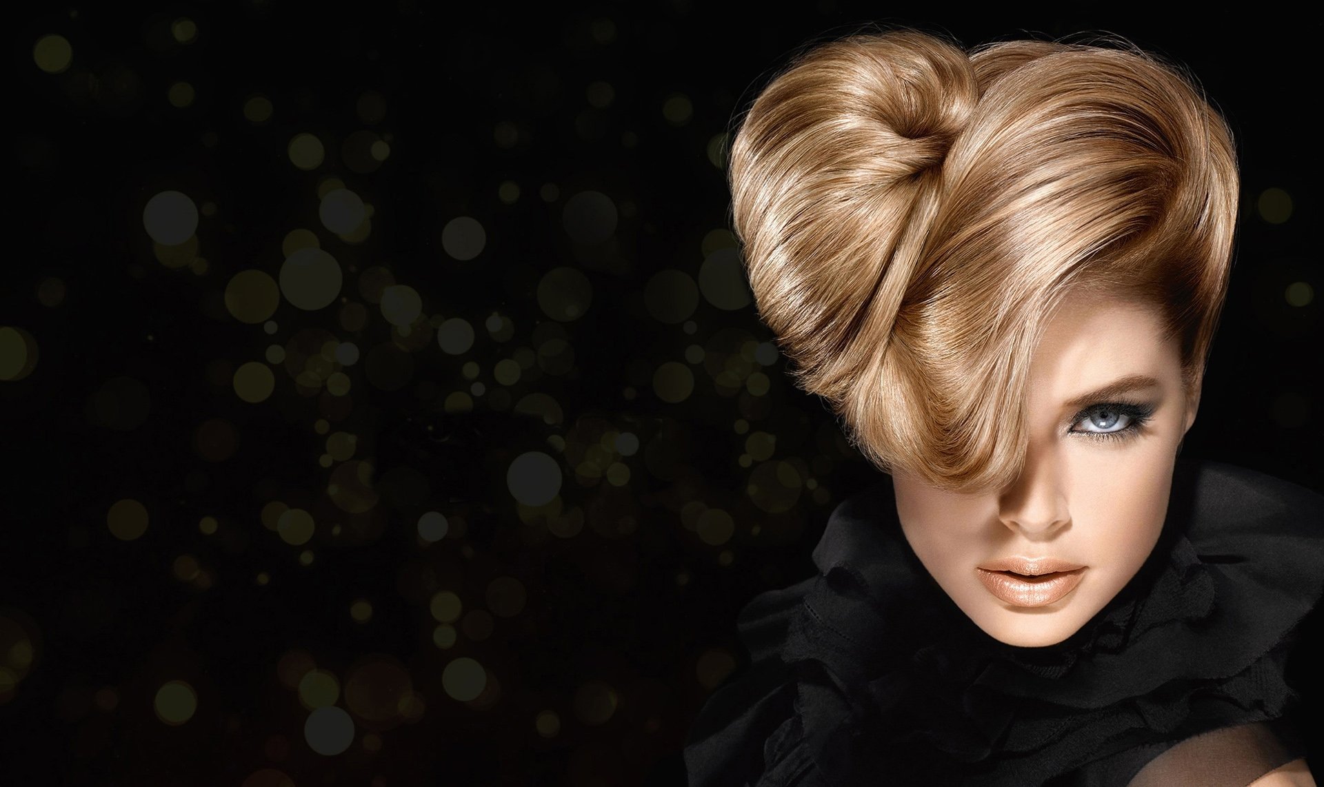 Mädchen mit ungewöhnlicher Frisur auf schwarzem Hintergrund
