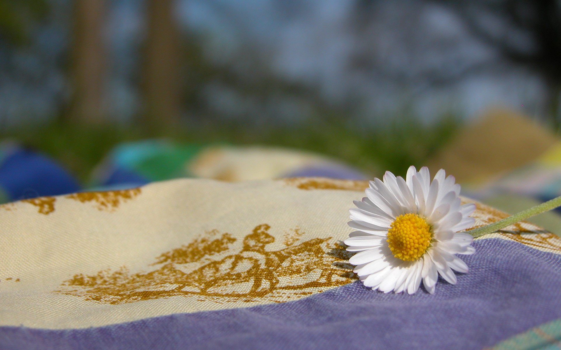 Ein Mädchen mit roten Haaren und violetten Lippen liegt in einem altrussischen blauen Kleid auf einem grünen Stoff