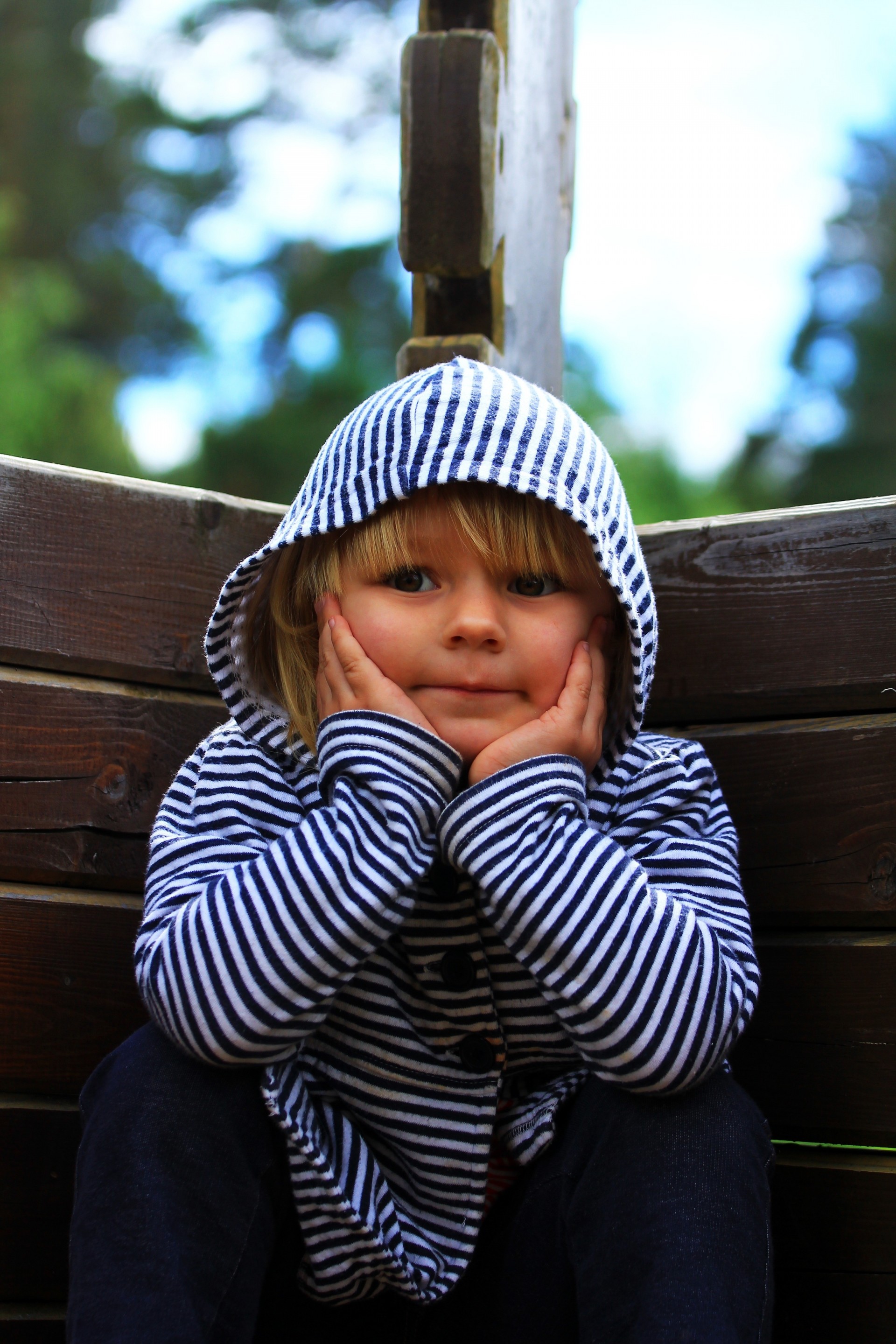 Das Kind hat bei bewölktem Wetter nachgedacht