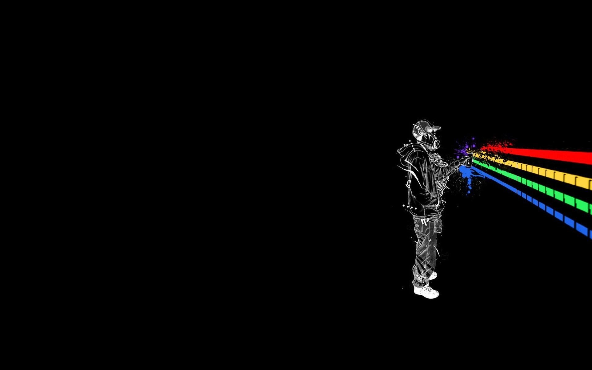 Mann, der mit einem Ballon schillernde Linien auf schwarzem Hintergrund zeichnet