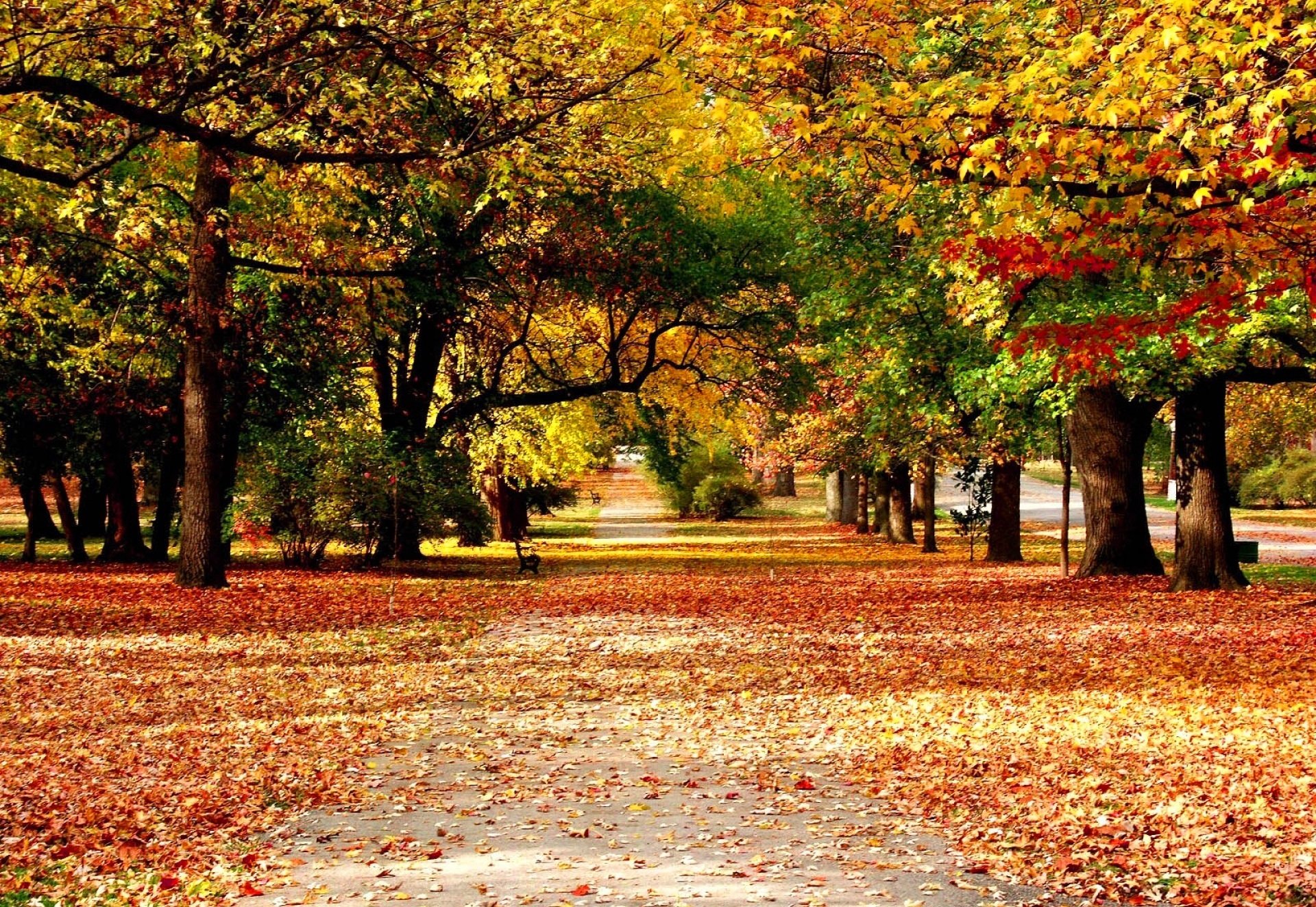 Im Herbst ist der Wald, wo die Bäume entlang der Straße wunderschön sind!