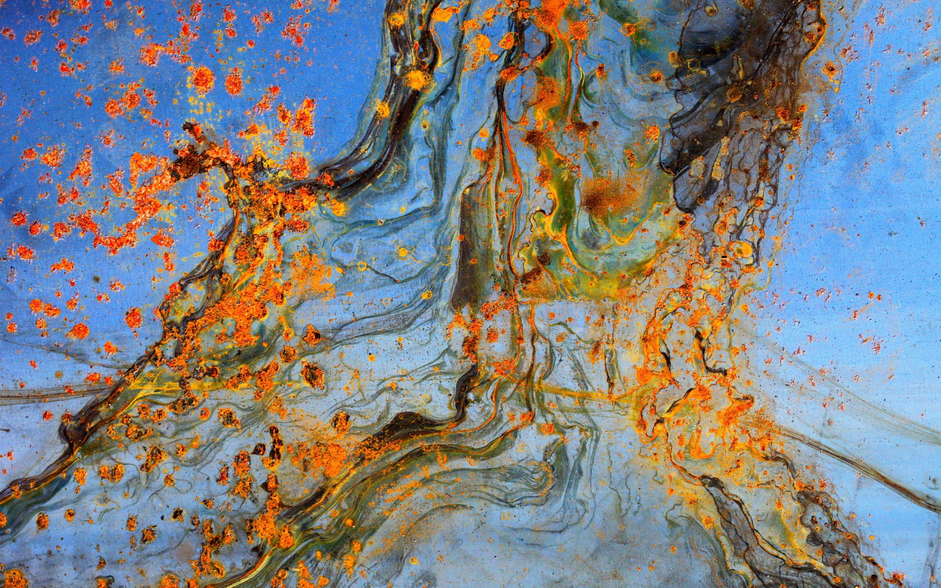 Blauer Himmel kombiniert mit orangefarbenen Herbstfarben