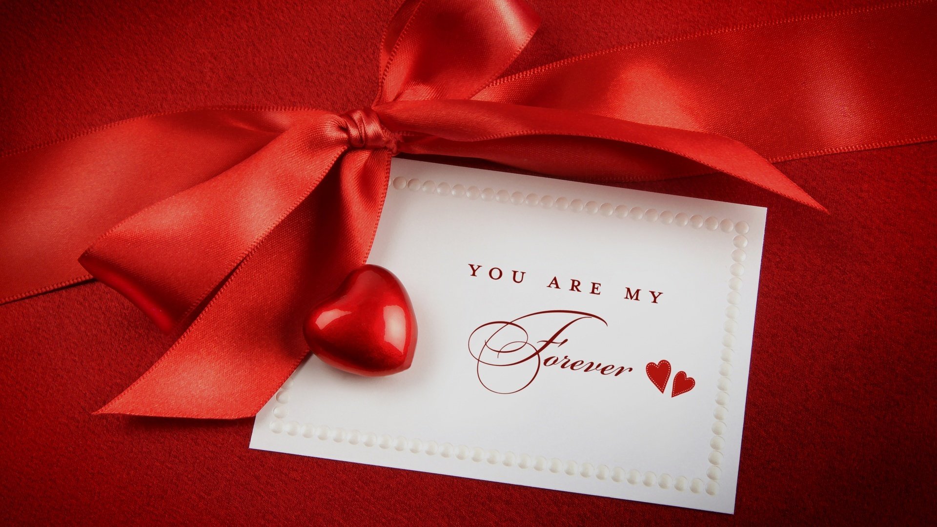 Ein Valentinsgruß mit Anerkennung, der mit einem Bogen verziert ist. Auf rotem Hintergrund