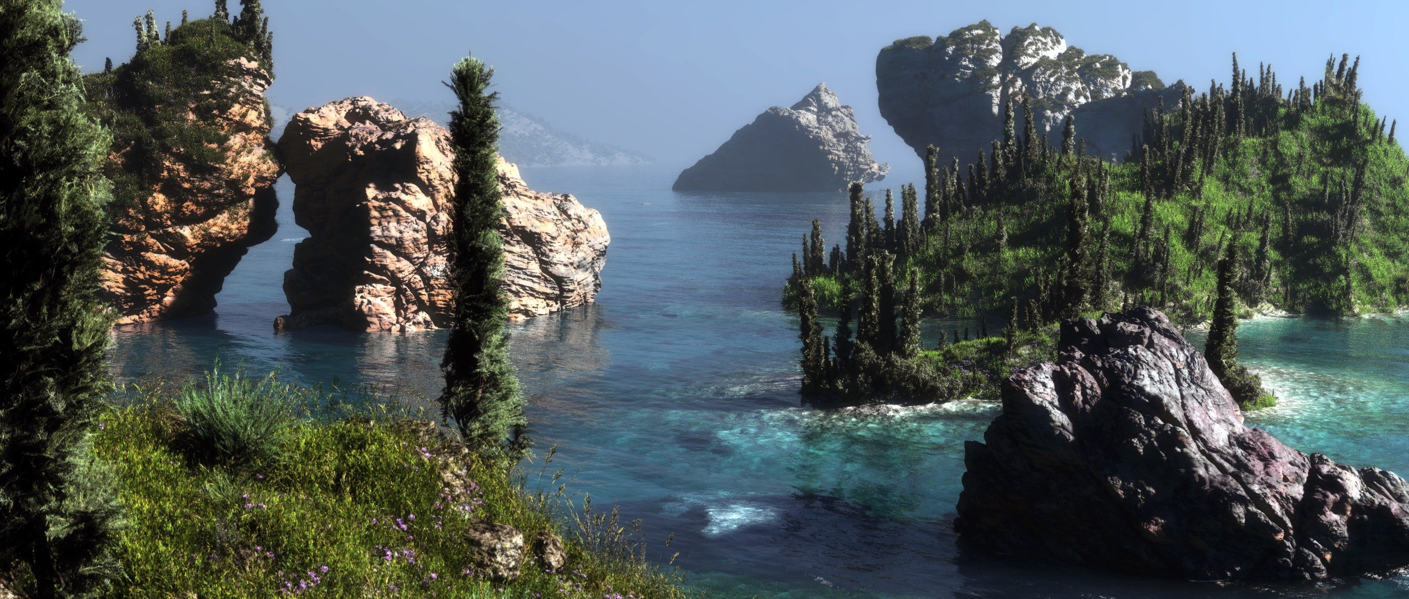 Sonnenuntergang Foto des Meeres. Ein Gerüst mitten im Meer bei Sonnenuntergang. Eine einsame Insel im Meer