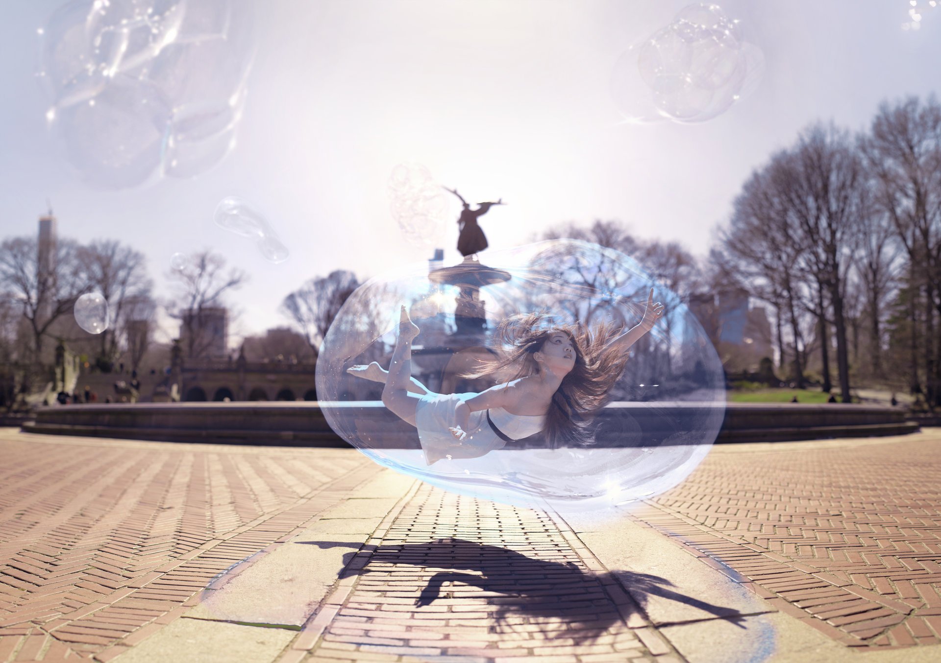 Die Blondine in einer Jeansweste liegt im Heu und hält eine Sonnenbrille