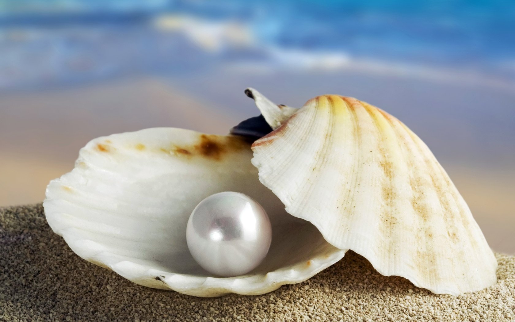 Blondine mit Schakarfigur auf dem Hintergrund des Meeres