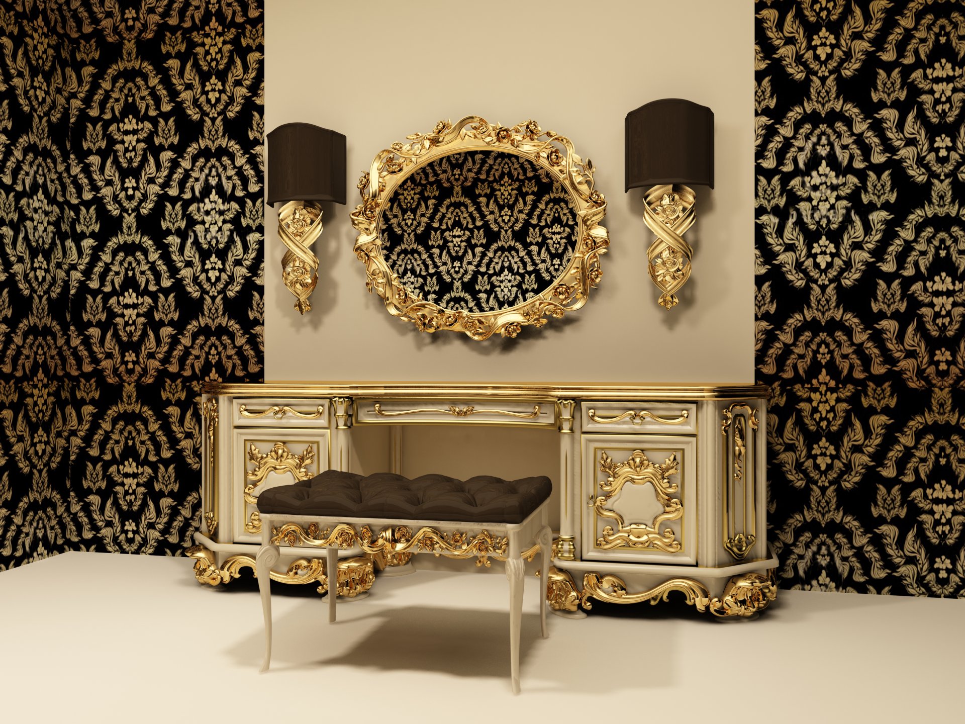 Das Innere des Schlafzimmers ist mit einem großen Bett, Kissen und schönen Lampen ausgestattet