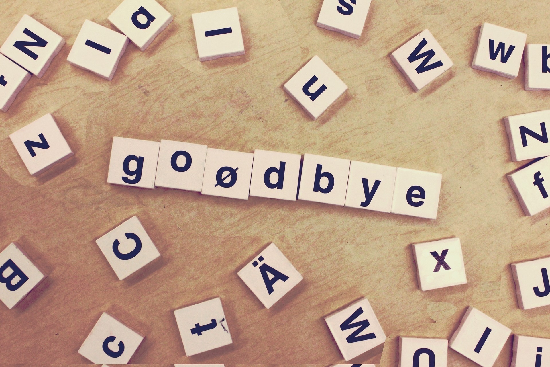 Die Inschrift Goodbay besteht aus Würfeln mit Buchstaben