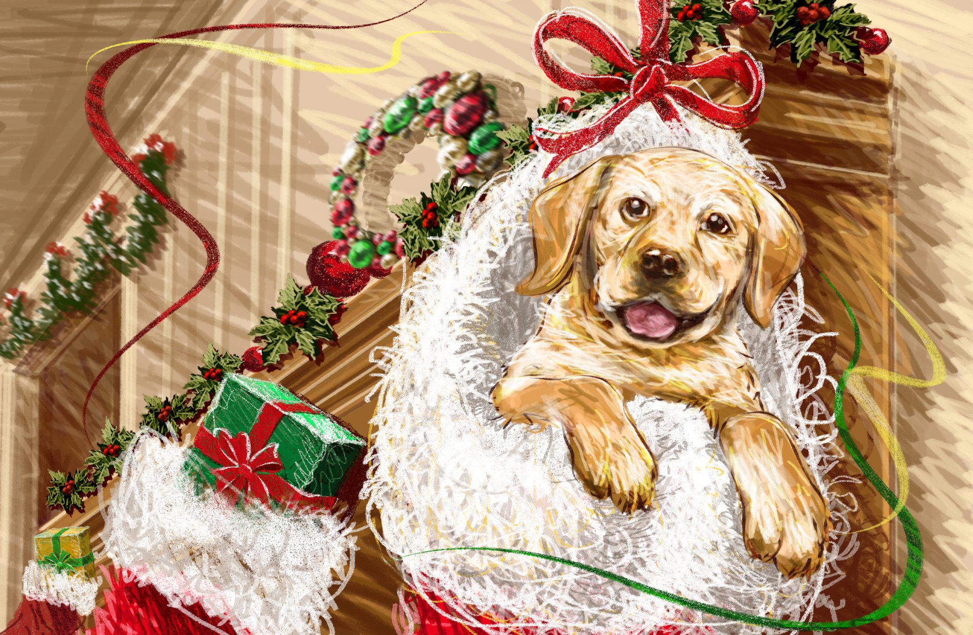 Welpe im Neujahrssocken