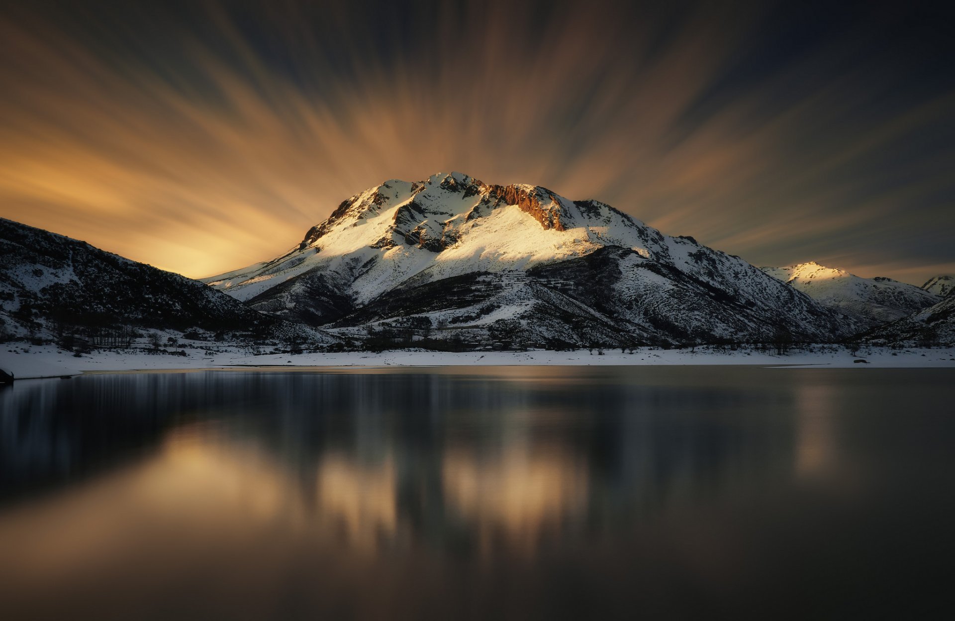 Feuriger Sonnenuntergang, Reflexion im See