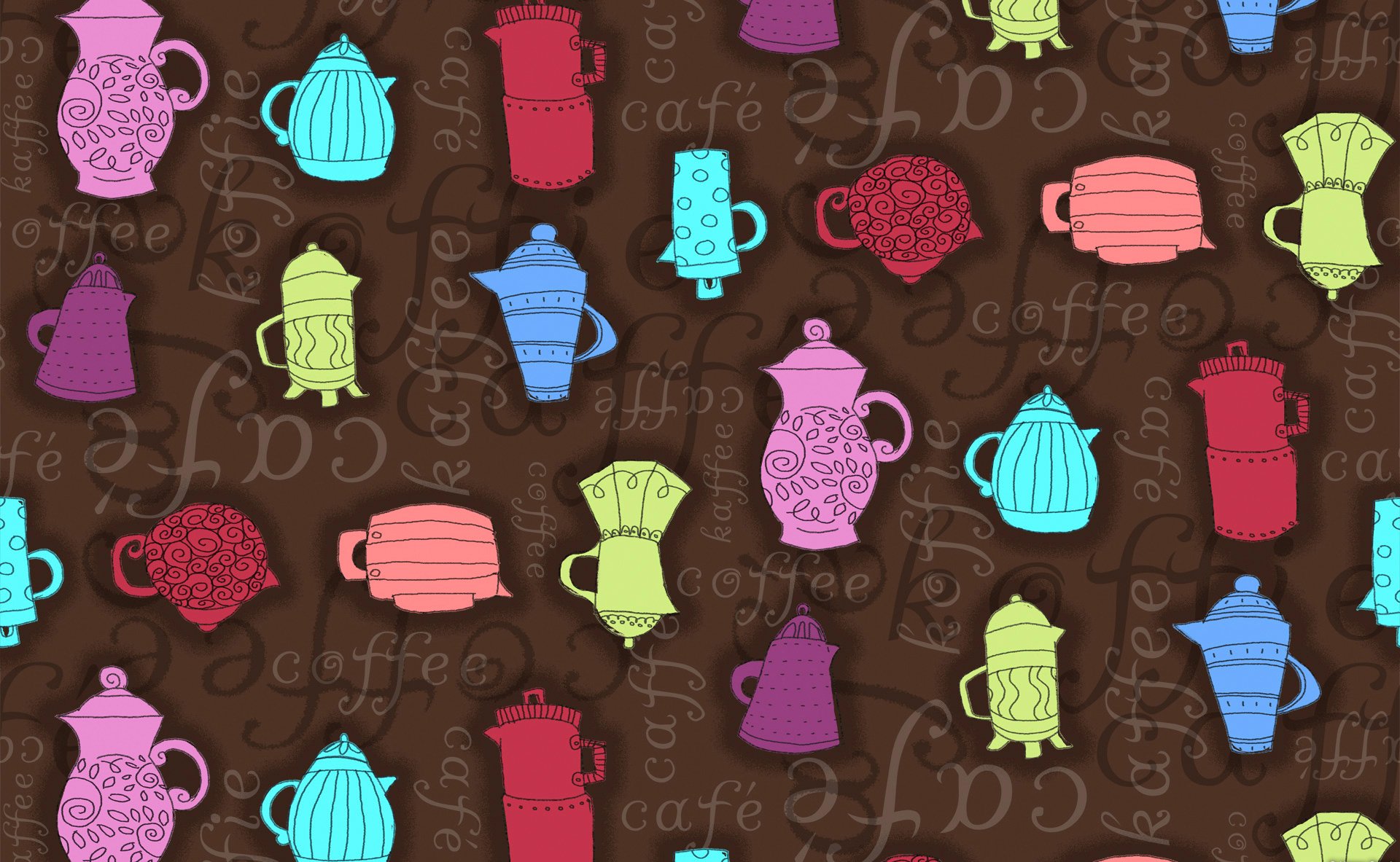Kaffeekannen und Teekannen auf braunem Hintergrund
