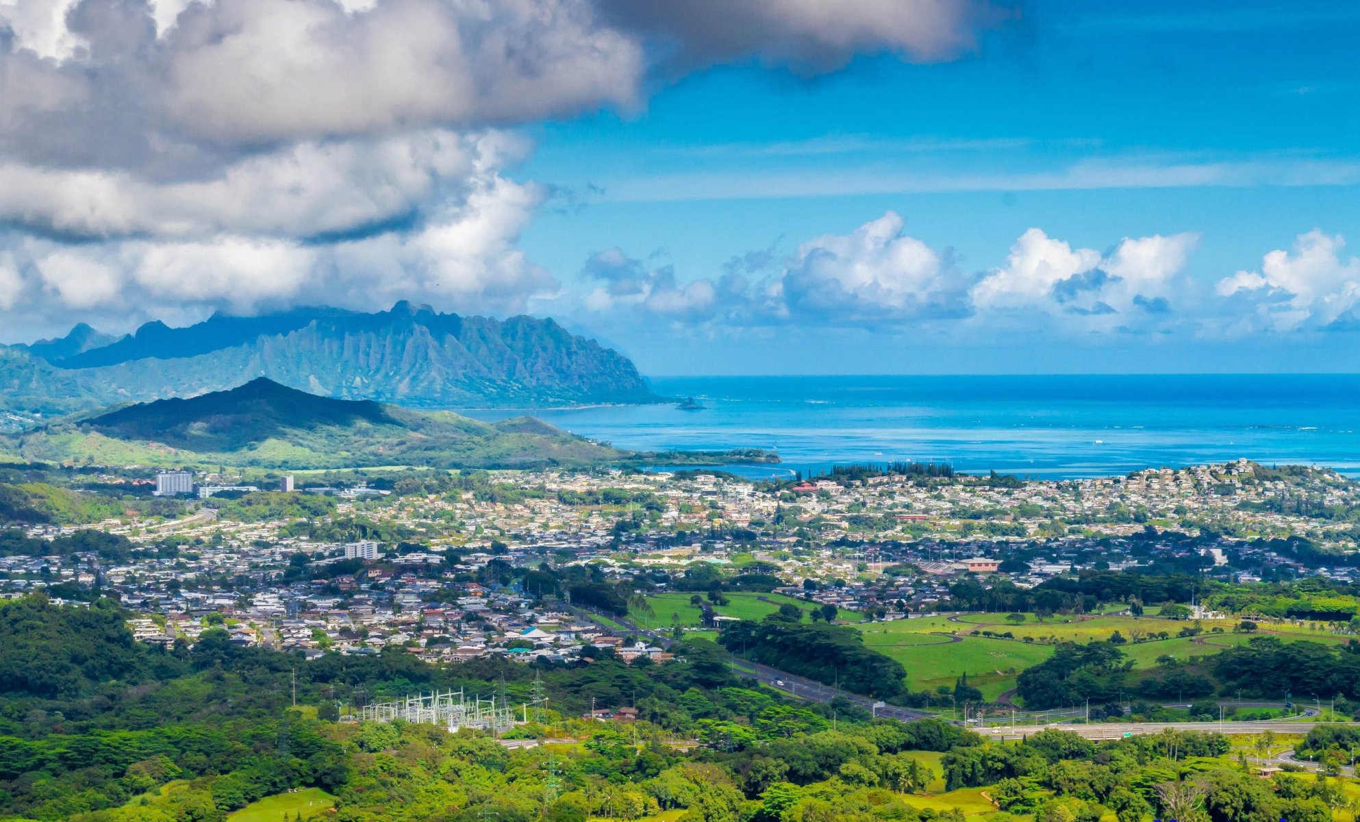 Panorama der Stadt mit Blick auf den Berg