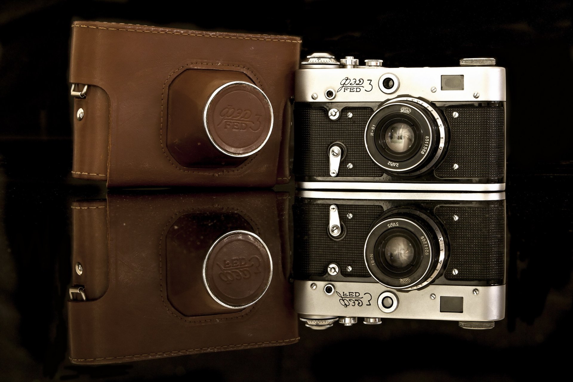 Vintage-Kamera in braunem Etui