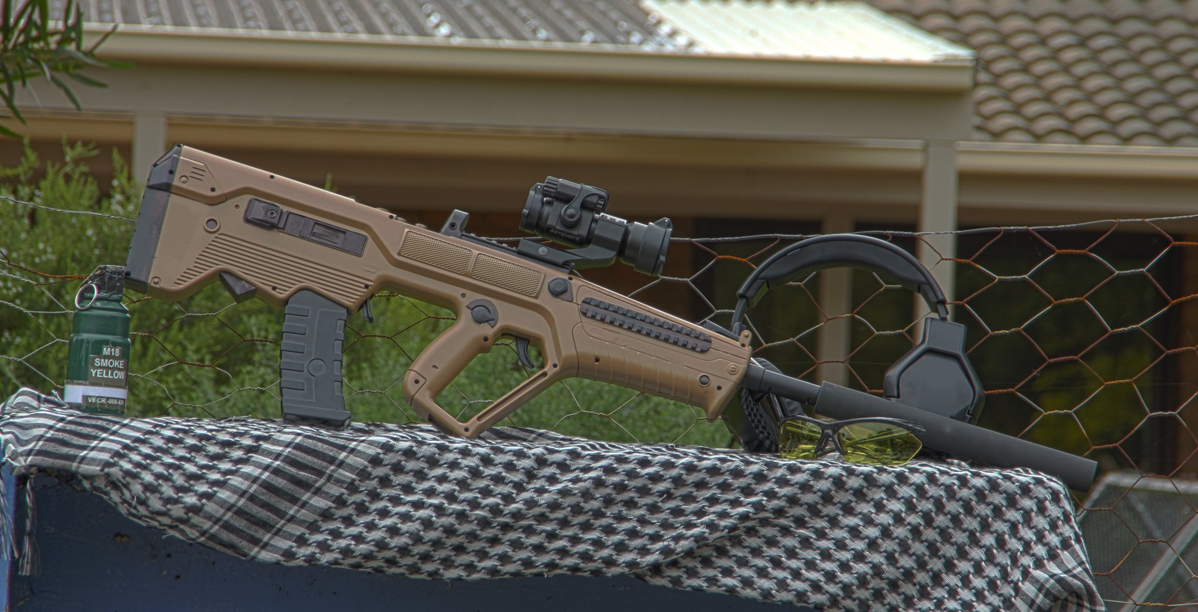 Sakotrg-22 Scharfschützengewehr mit Schalldämpfer auf dem Rasen