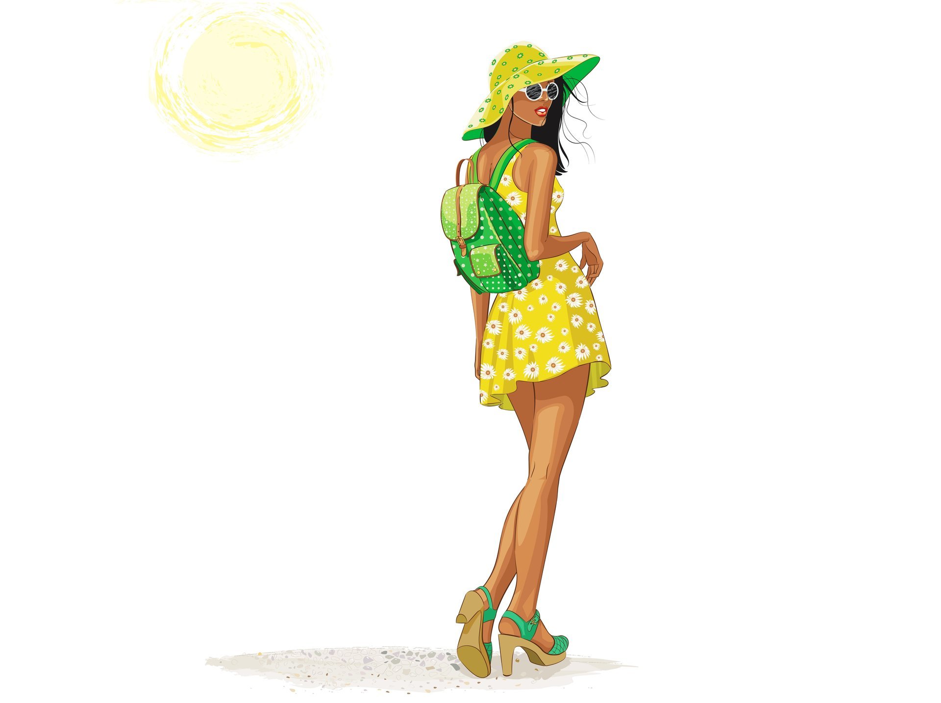 Ein Mädchen in einem kurzen weißen Kleid geht die Straße entlang, der Blick ist nach vorne gerichtet