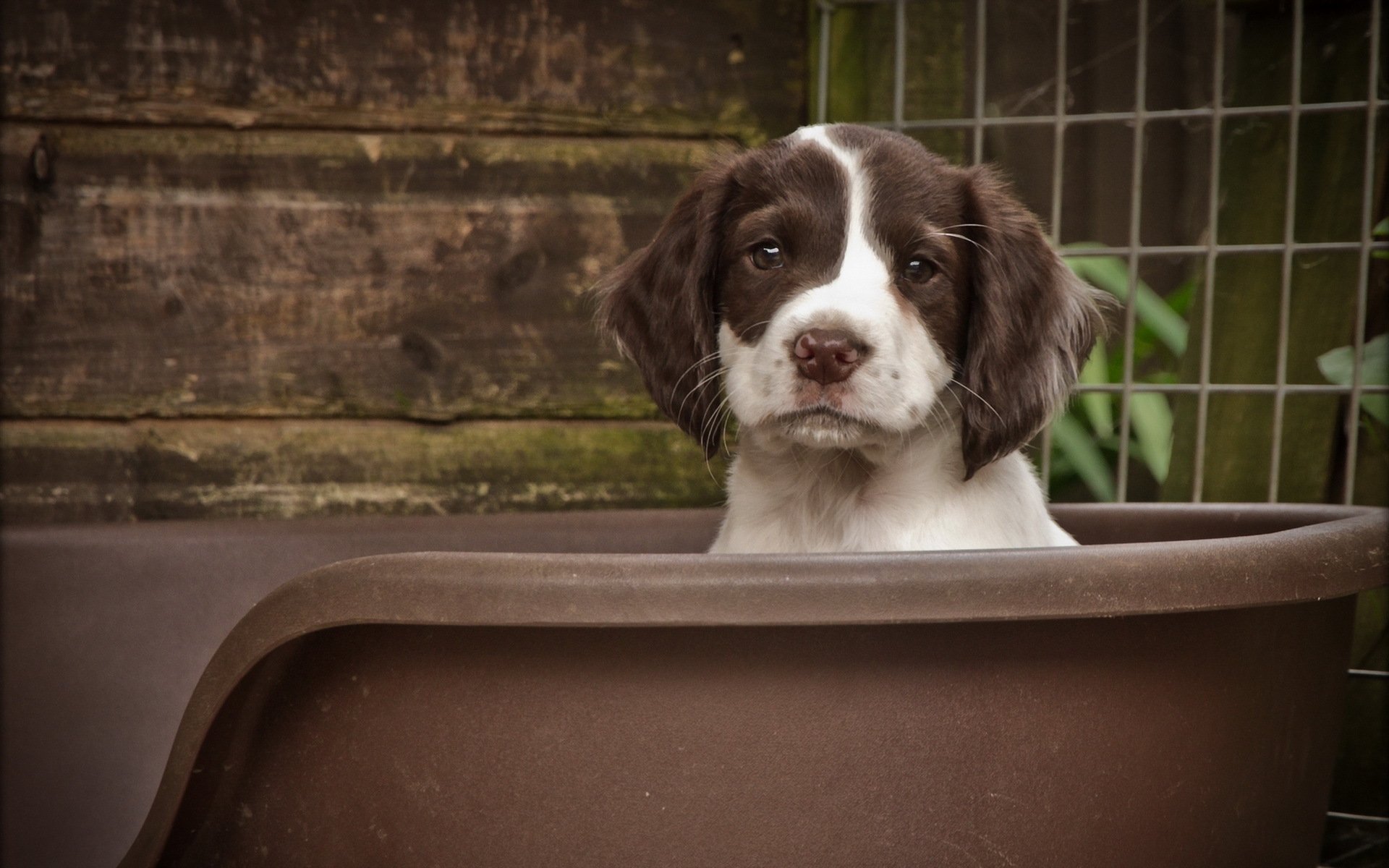 Kleiner Hund in einer Decke mit einem süßen Maulkorb