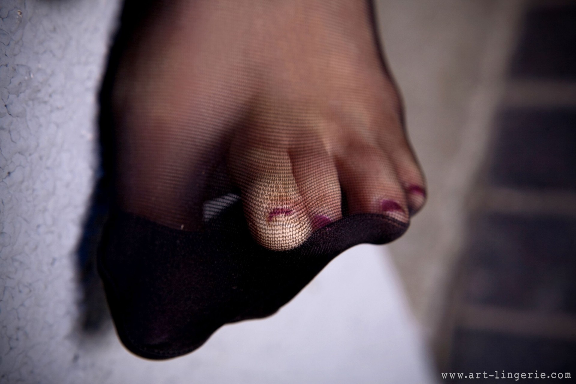 Bein mit einem schlechten Kinderarzt in schwarzen Strumpfhosen