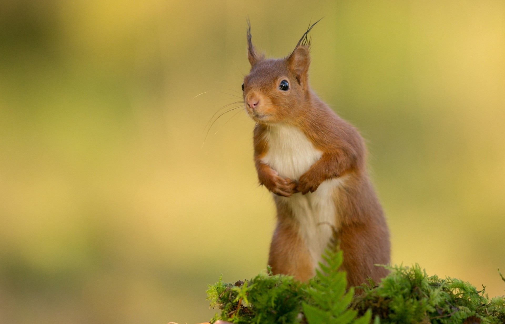 Ein kleines Nagetier steht mit Blättern auf einem Hanf