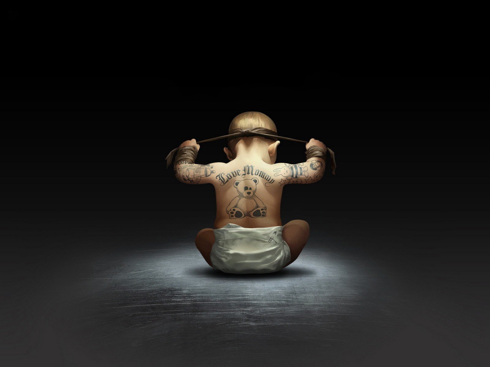 Kleines Kind mit Tattoos in Windeln