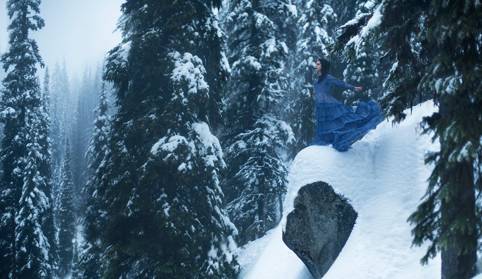 Blick vom Balkon auf die nebligen Gipfel der Berge