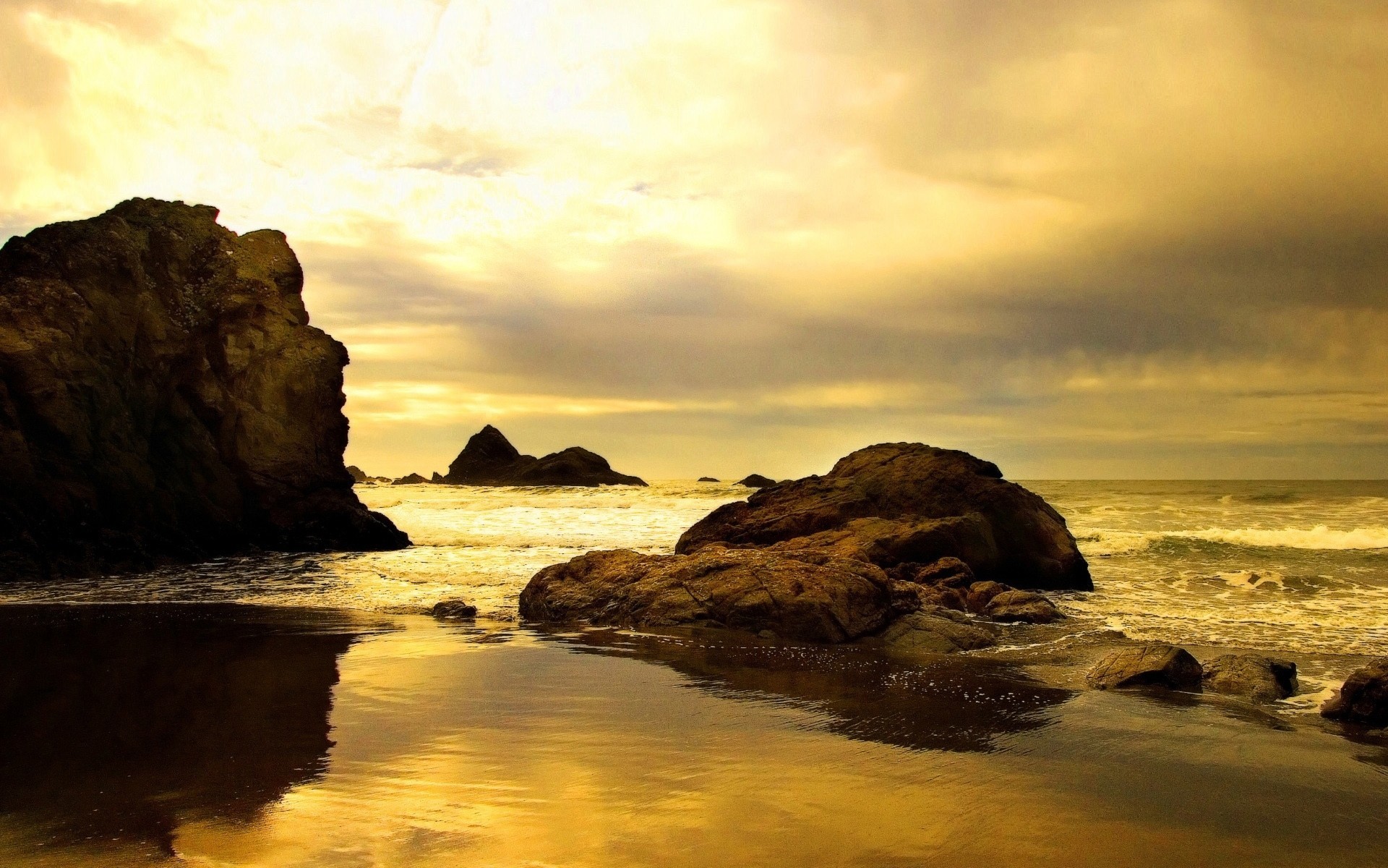 Sonnenuntergang und Steine werden im Wasser angezeigt