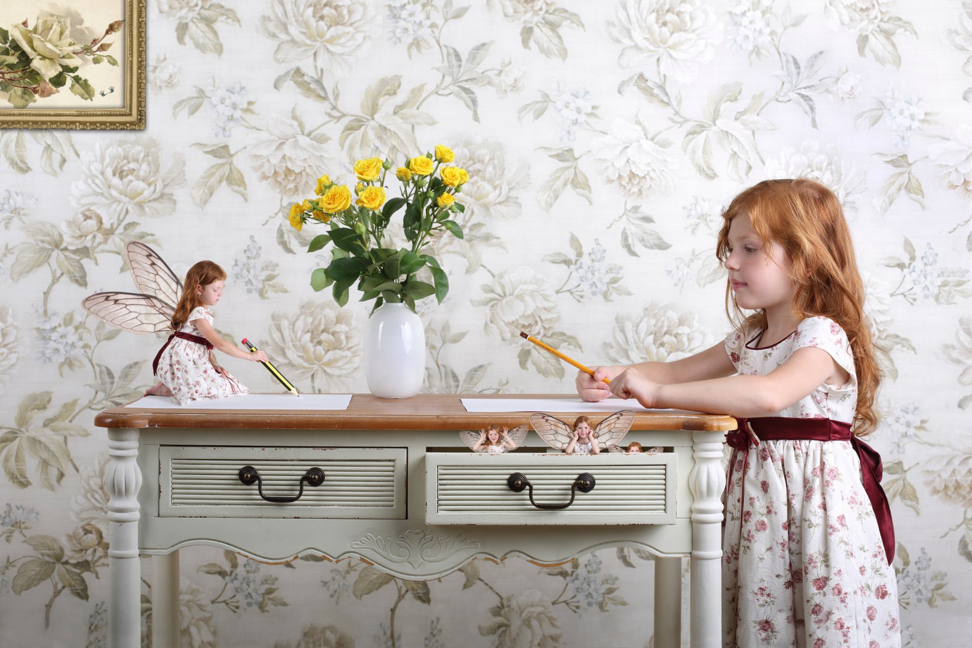 Zeichnung eines Monsters und eines verängstigten Hundes
