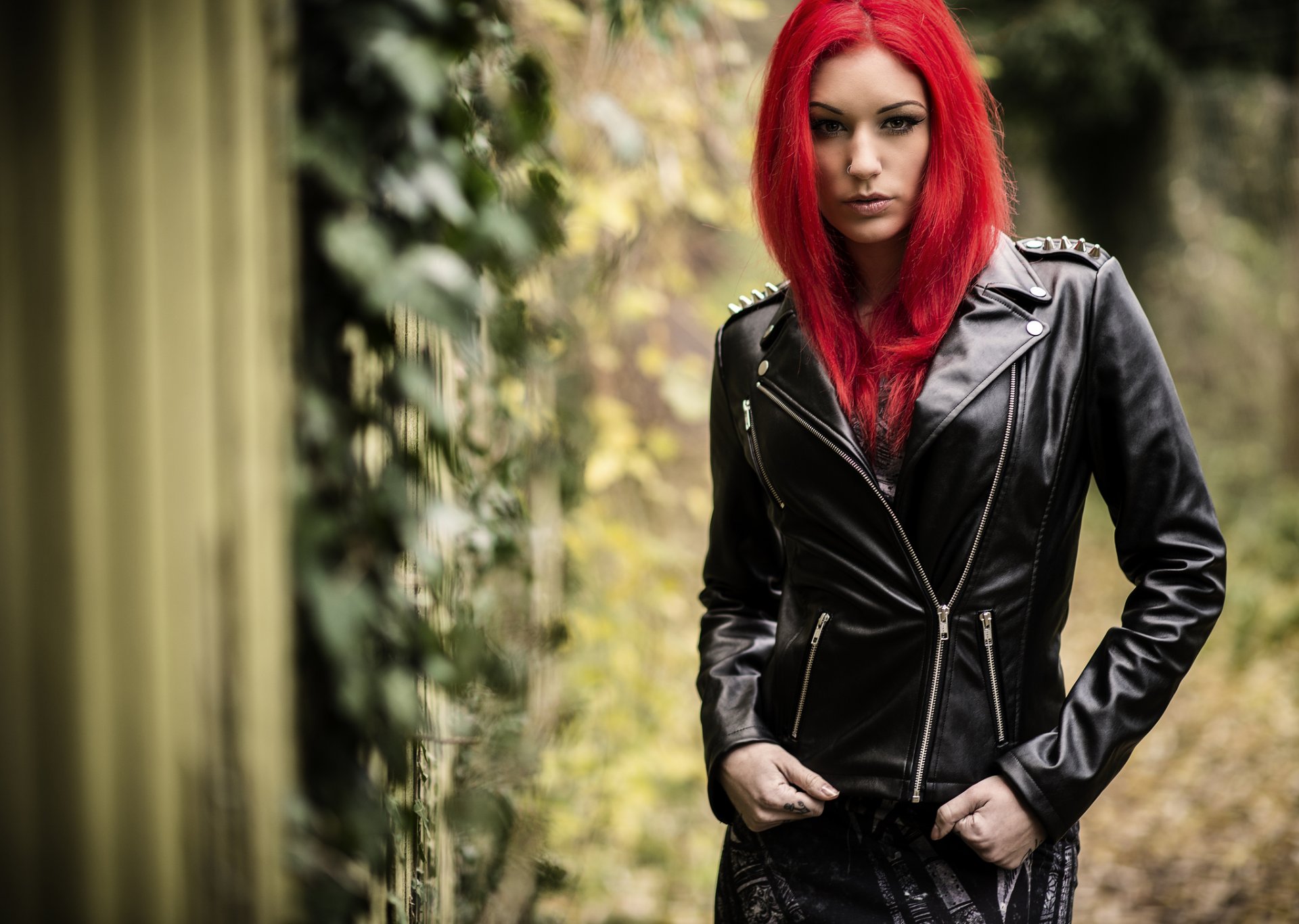 Mädchen in einer Lederjacke mit roten Haaren