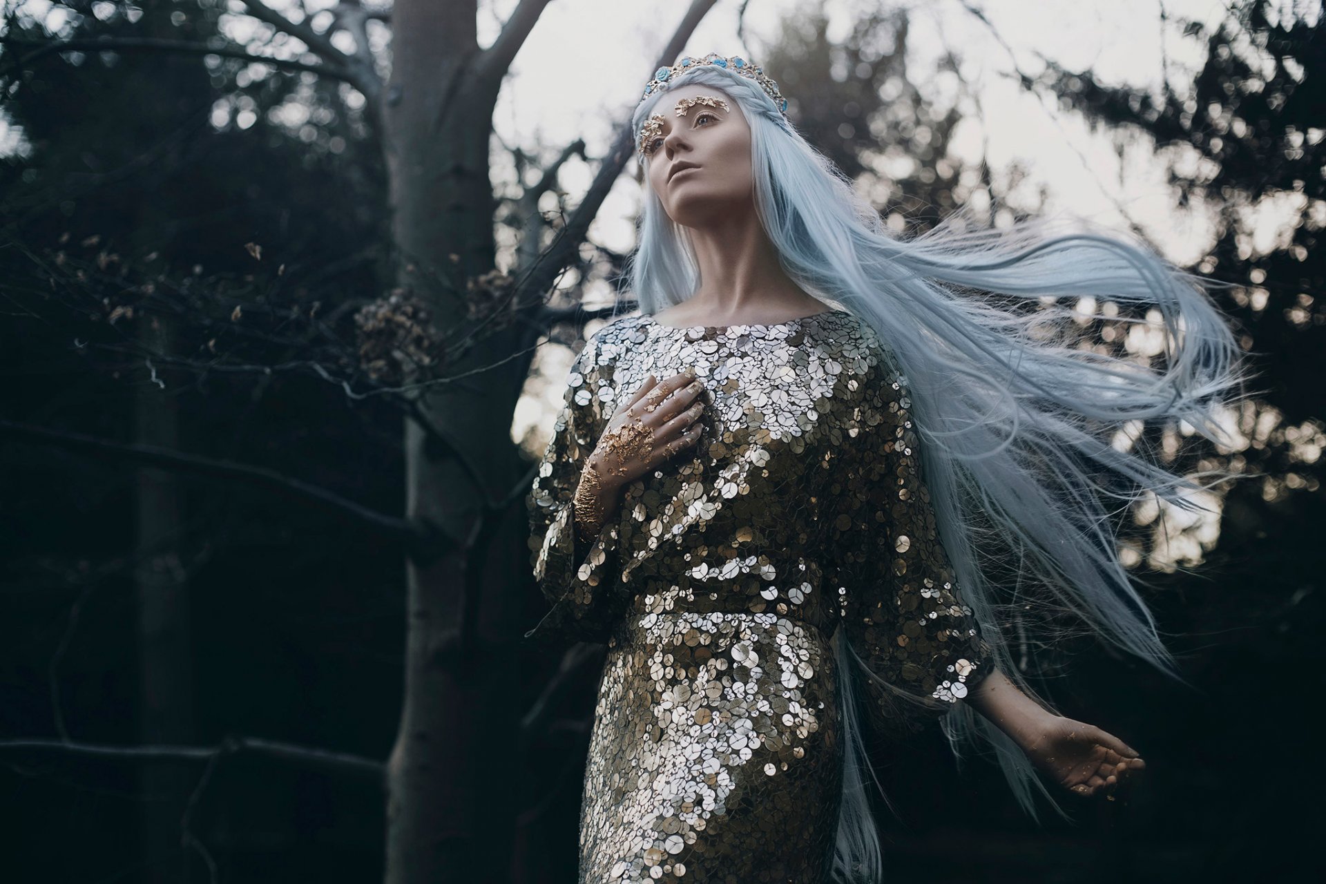 Bella kotak, langhaarig, trägt ein glänzendes kleid