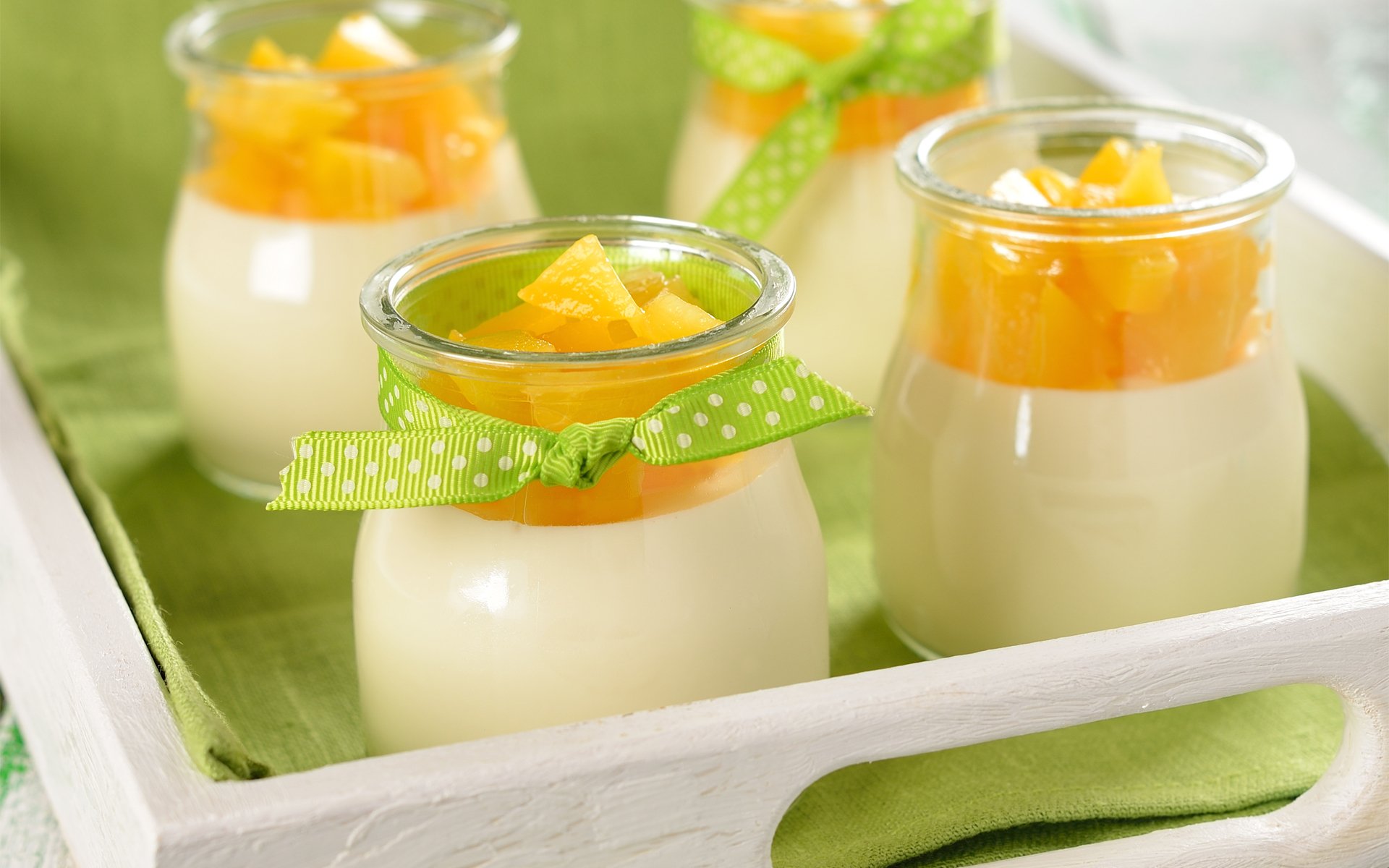 Panna Cotta mit Pfirsich ist ein leichtes morgendliches Dessert
