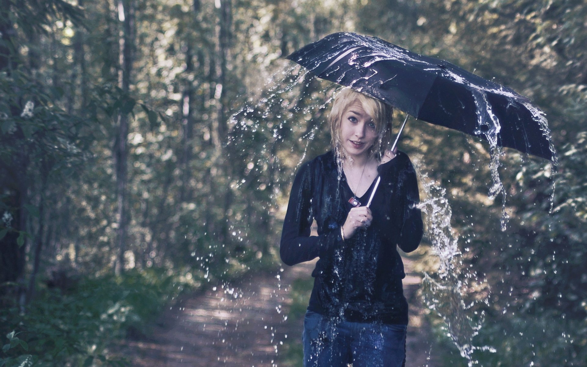 Mädchen unter einem Regenschirm an einem regnerischen Tag